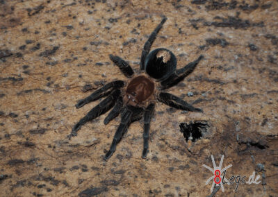 Cyriocosmus sellatus Herkunftsland: Kolumbien Lebensweise: Bodenbewohner Endgröße: ca. 3 cm Körperlänge